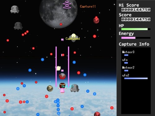 ■月は無慈悲な夜の女王 2011.06.19 【 お題 】 土日スレ12の930さんの音素材、合体 【ジャンル】 シューティング 【 概要 】 宇宙にやってきた音の精 迫りくる隕石を破壊して下さい ダウンロード(2.58MB) |
