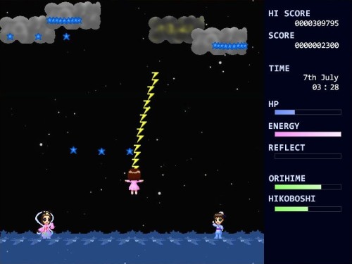 ■七夕 MILKY WAY 2011.07.10 【 お題 】 七夕、雷 【ジャンル】 シューティング 【 概要 】 七夕の間、星の雨や雷から、織姫&彦星を守って下さい ダウンロード(1.59MB) |
